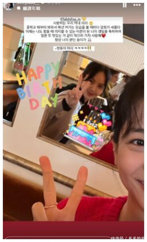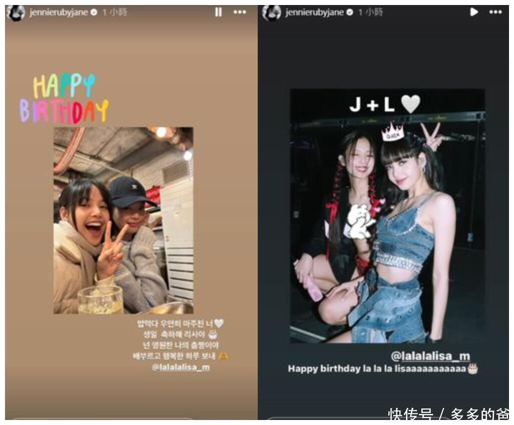 Jennie今早相通晒出与Lisa在餐厅的合照,“吃饭时巧合碰见了妳,生辰得志Lisa,你永恒是我的跳舞之星,但愿你吃得饱饱的、渡过幸福又得志的一天。”